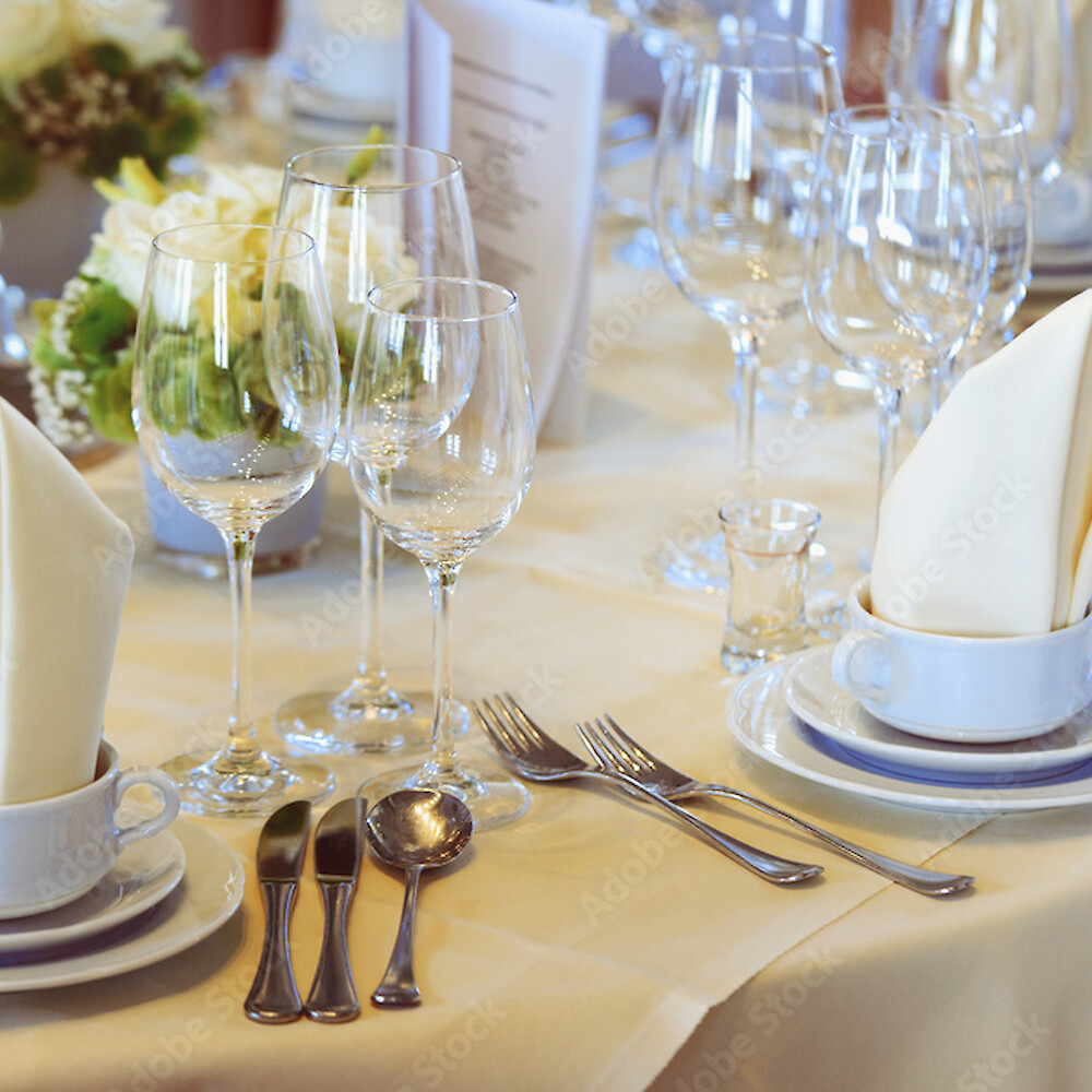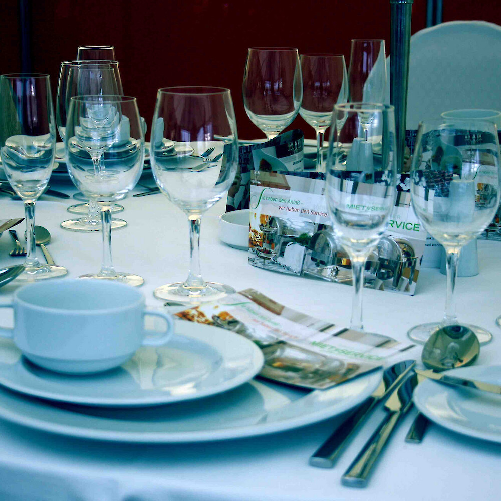 Wir vermieten Ihnen: Gastronomie & Küchenartikel, Geschirr & Besteck, Gläser & Deko, Buffetzubehör, Mietmöbel, Kühl- und Warmhaltetechnik, Ausschank- und Barequipment usw.